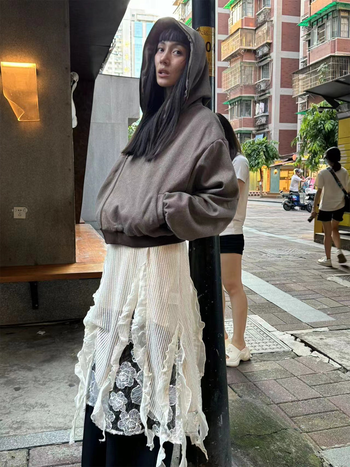 grit linen layered hoodie